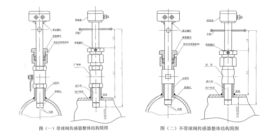 3、將DN50球閥安裝到安裝底座上。注意球閥的長空腔向上,檢查球閥是否能全開全關(guān)、將壓緊螺紋座、壓緊螺母和橡膠密封圈安裝到球閥上。松開定位螺母。將傳感器插入桿通過球閥插入被測管道,同時(shí)應(yīng)注意傳感器方向標(biāo)志桿指向應(yīng)和流體流向一致。